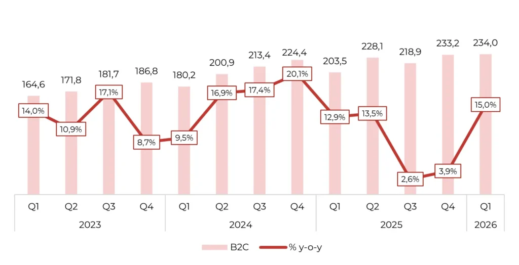 B2B ner kraftigt och B2C går starkt