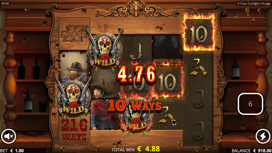 Först av allt måste vi bara meddela att du kan skjuta med din revolver i spelet - så löjligt rolig funktion. Nya skott laddas för varje spinn och ditt skjutande har ingen påverkan på spelet, annat än att det är kul. Du har möjlighet att själv ställa in spelets volatilitet från hög till extremt hög och beroende på inställning kommer också storleken på spelplanen justeras.