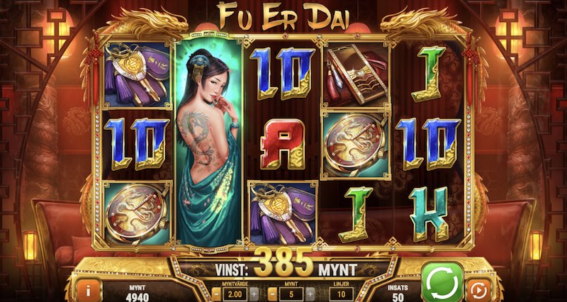 Vi är imponerade av de grafiska elementen likväl musikspåret i Fu Er Dai. Man uppslukas av stämningen och draksymbolerna uppenbarar sig ofta. Bland de övriga symbolerna finner vi de klassiska 10, J, Q, K och A samt ett gäng typiskt asiatiska symboler, och den du helst vill ha är – förutom draksymbolen – symbolen med killen som har glasögon. Han betalar mest.