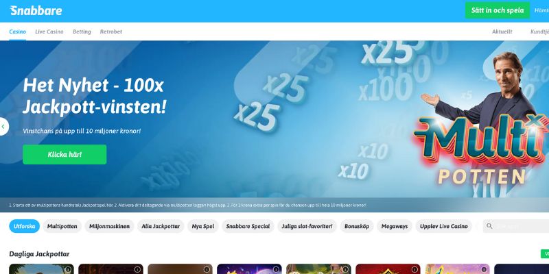Väl inne på Snabbare navigerar du bara till casino-avdelningen där du hittar Multipotten som underavdelning. Alla spel i den här avdelningen är knutna till jackpotten och du kan vara med och spela för en extra insats av 1 krona.