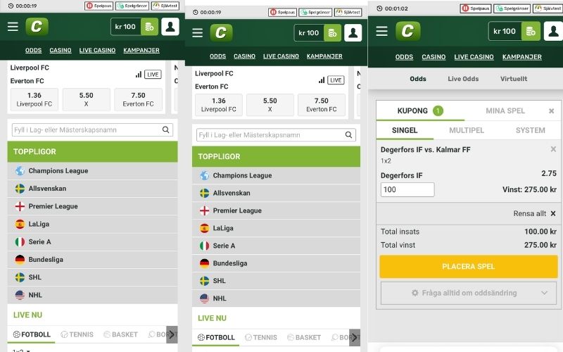 Hos Campobet kan du spela på odds på de flesta sporter och i de flesta populära ligor och event. De erbjuder live betting, men tyvärr ingen live streaming. Du kan även betta i deras app som finns att ladda ner till telefonen.