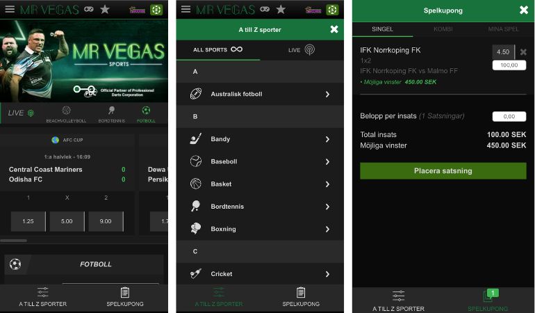 Visst är det kul att Mr Vegas nu även har betting…men det är ett av de minsta utbudet av bettingkategorier vi har stött på. Men såklart kan du betta på de största sporterna, så som fotboll och ishockey.