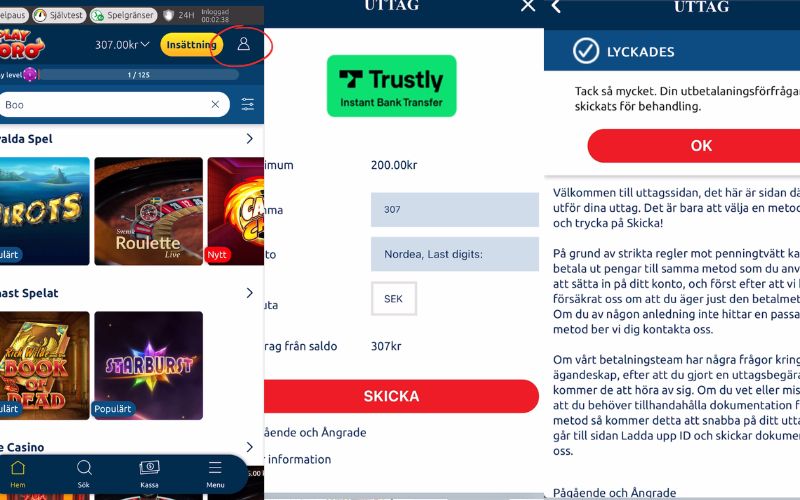 | Trustly | 0-48 h | 0 | 200 SEK |