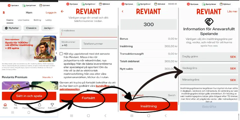 Att registrera sig hos Reviant fungerar som på de flesta moderna Pay’n Play-casinon: