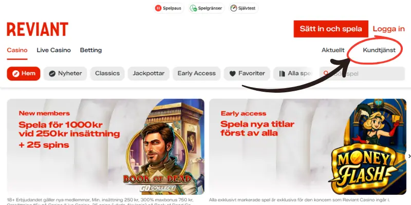 Nya spelare hos Reviant får upp till 750 kr i bonus + 25 free spins till Book of Dead Go Collect.