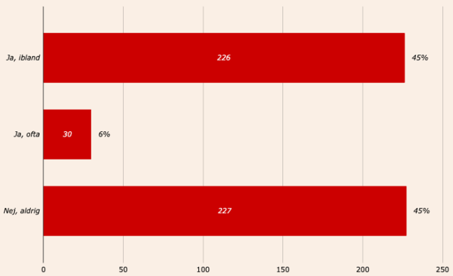 Varje dag eller nästan varje dag | 8 % | 7 % |