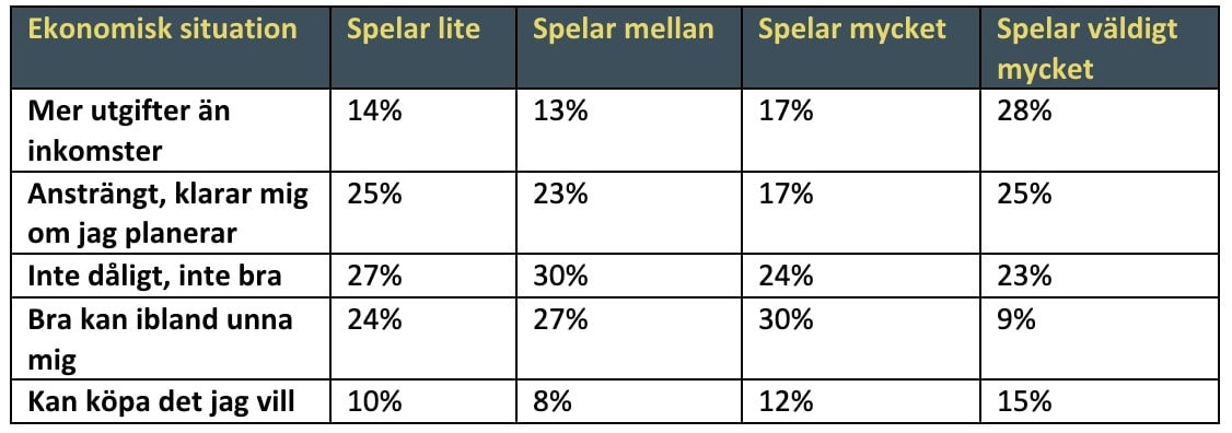 Utan istället var det de som spelar väldigt mycket som upplever sig ha svårast ekonomisk situation, trots deras höga medelinkomst.