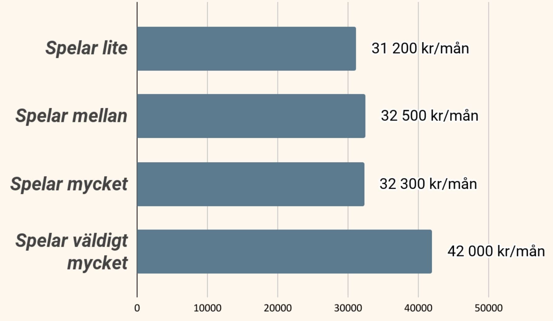 | Spelar väldigt mycket | 15 385 kr/mån |