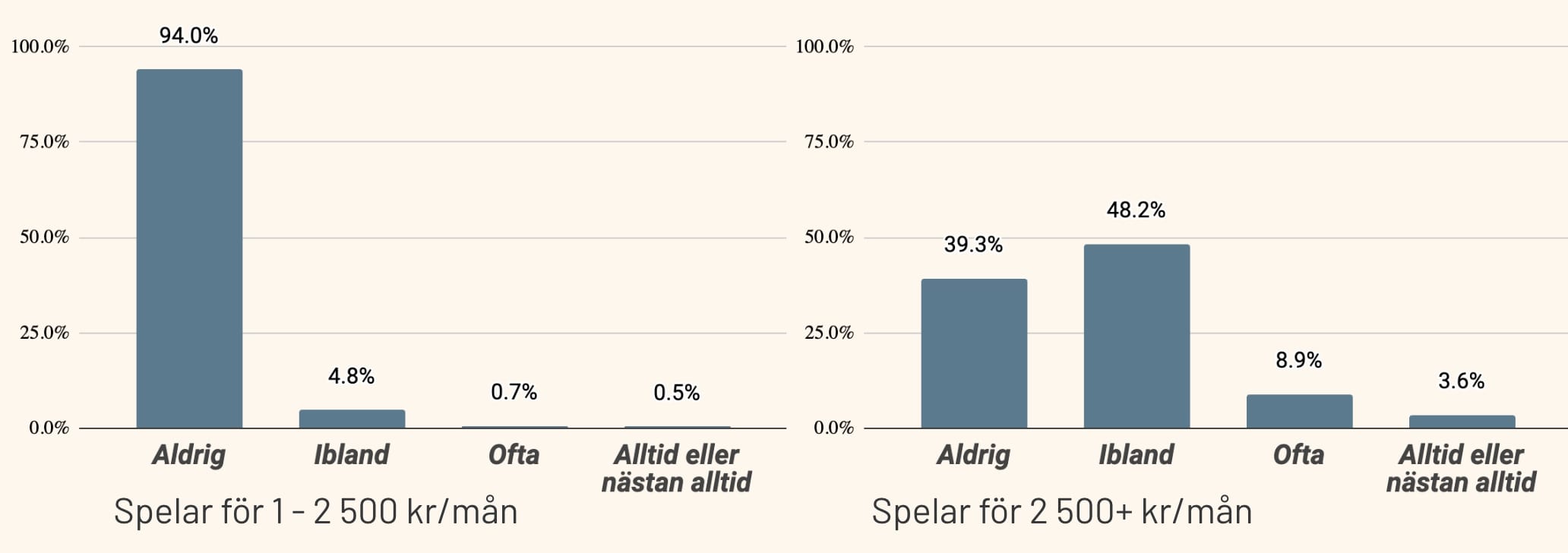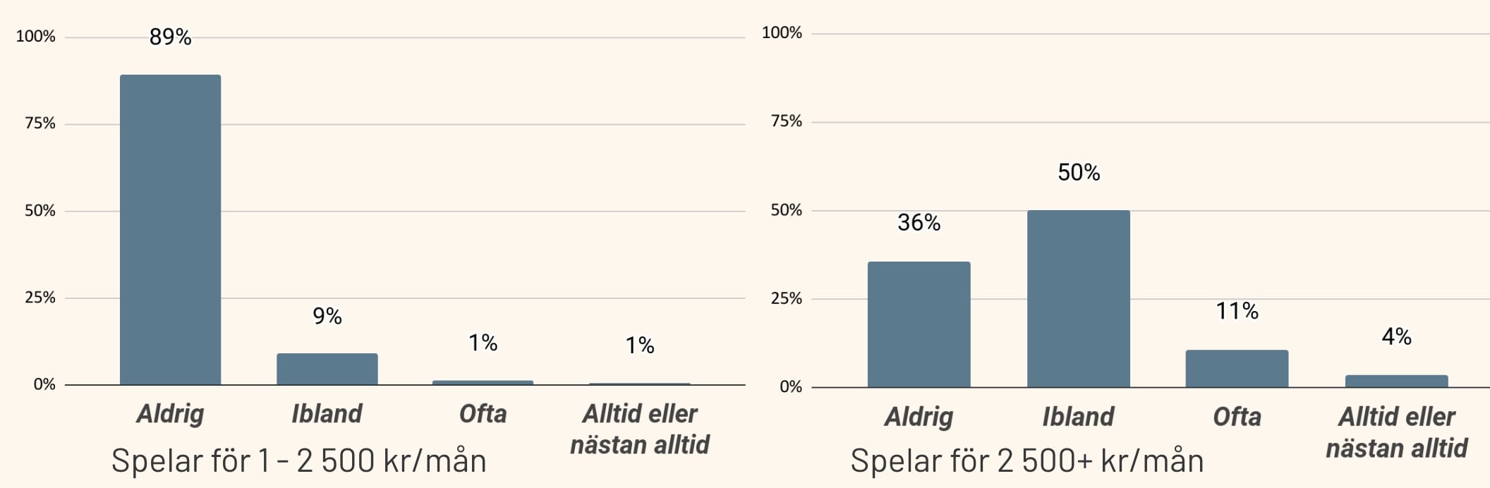 - Spelar mycket = 1 001 – 2 500 kr/mån
