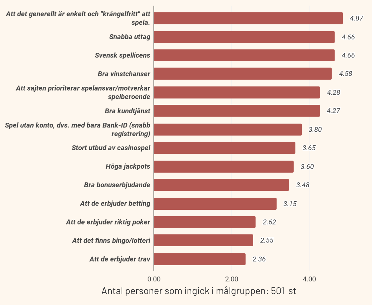 | Fråga till respondenterna | Vilka saker är viktiga för dig när du väljer vilken casinosajt du ska spela på? |