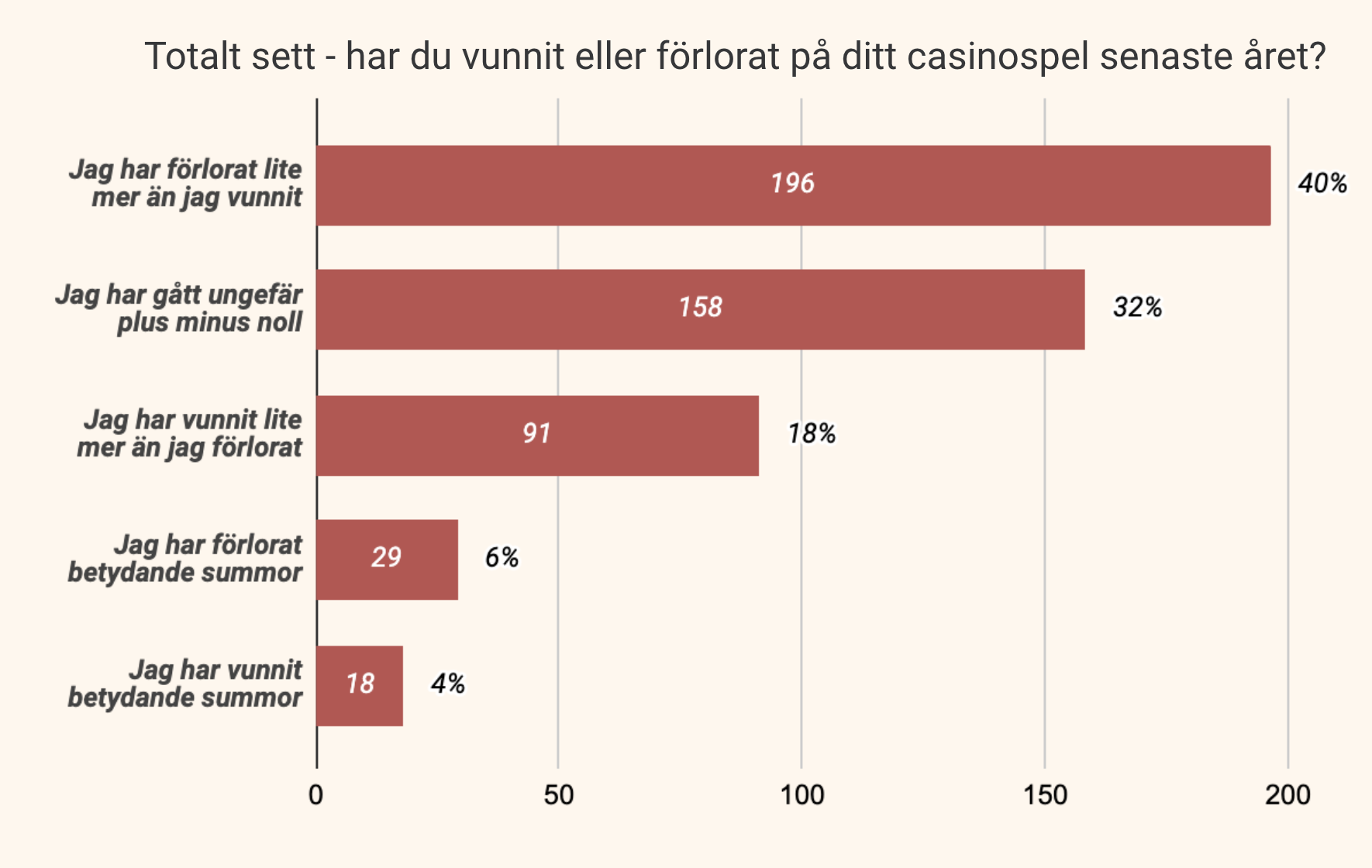 Vi frågade casinospelarna i CasinoTempen 2024 om de upplever att de har förlorat eller vunnit pengar om man ser till det samlade beloppet under de senaste 12 månaderna.