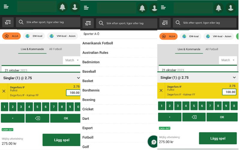 | Leverantör av oddsektionen: | Kambi |